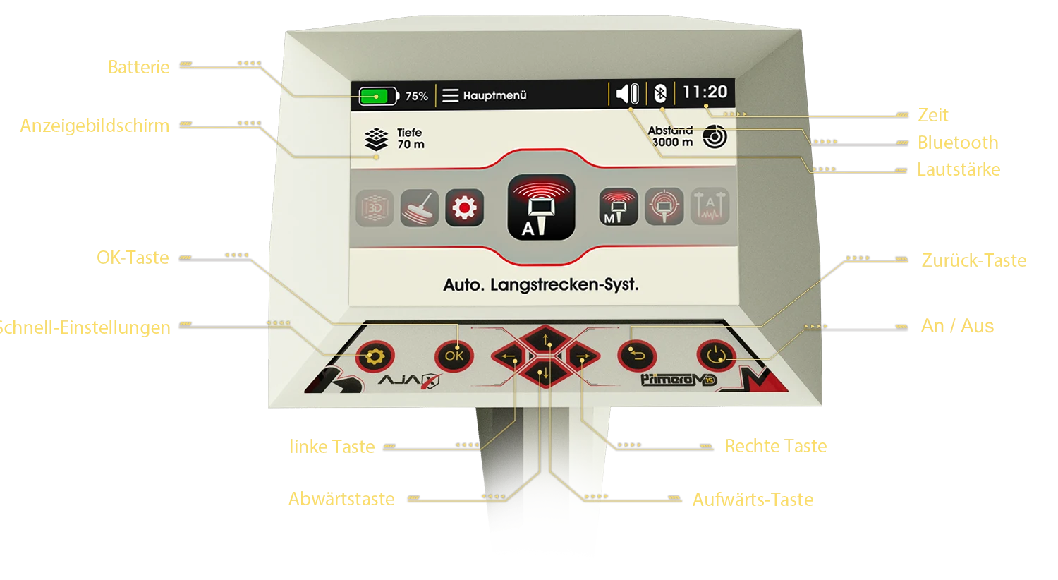 Der Primero MD15 von Ajax Detection Technology ist nicht nur ein Golddetektor; er ist eine integrierte wissenschaftliche Explorationsplattform, die entwickelt wurde, um dem Prospektor die volle Kontrolle über jede Phase der Suche zu geben: