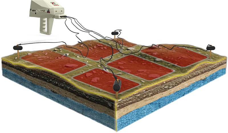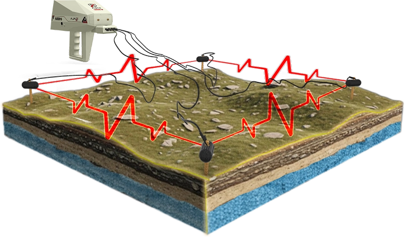 Based on measuring soil properties and electrical resistivity to locate water, metals, and voids accurately.
