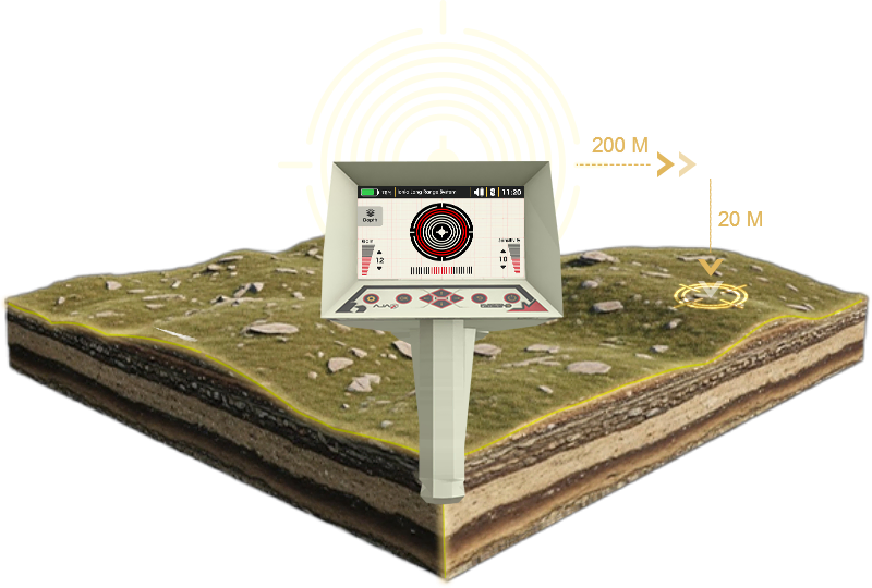 Detecting gold, raw gold, and precious metals. Distinguishing voids, caves, tunnels, and tombs. Analyzing soil layers and geological formations. Locating groundwater and determining its depths. Identifying the target type, shape, size, and depth with high accuracy.